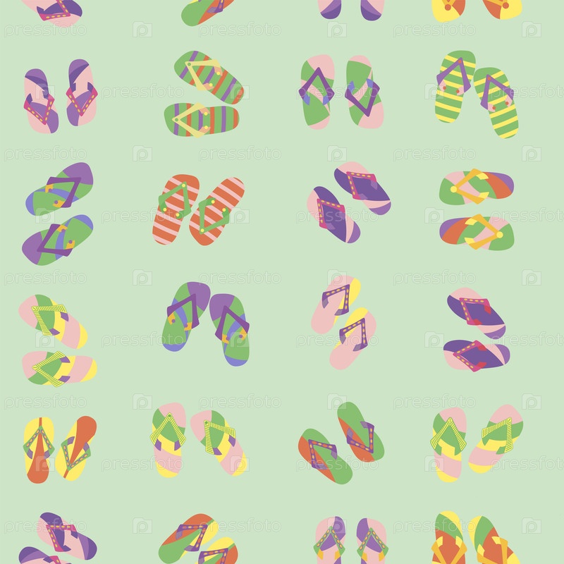 Бесшовный рисунок без фона, состоящий из красочных шлепанцев