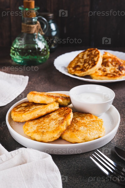 Хрустящие картофельные блинчики и соус на тарелке на столе вертикальный вид