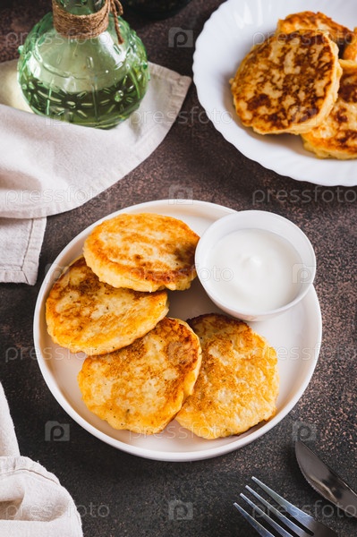 Аппетитные картофелины и сметана на тарелке на столе вертикальный вид