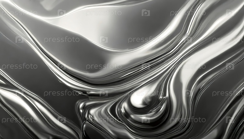 Металлическое серебро абстрактные формы жидкости с гладкой текучей текстурой, фон с копировальным пространством