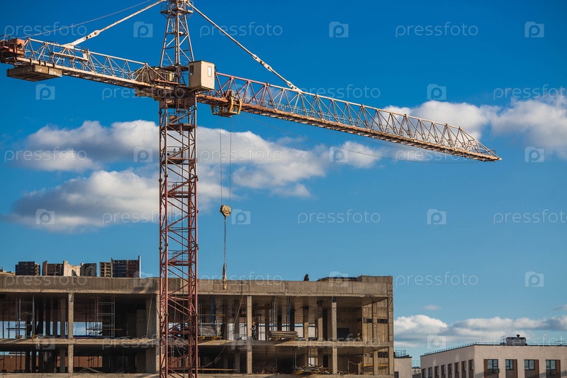 Строительство башенного крана в солнечный день. Строительство новых жилых районов. Новые здания. Видное, Ленинский район, Московская область