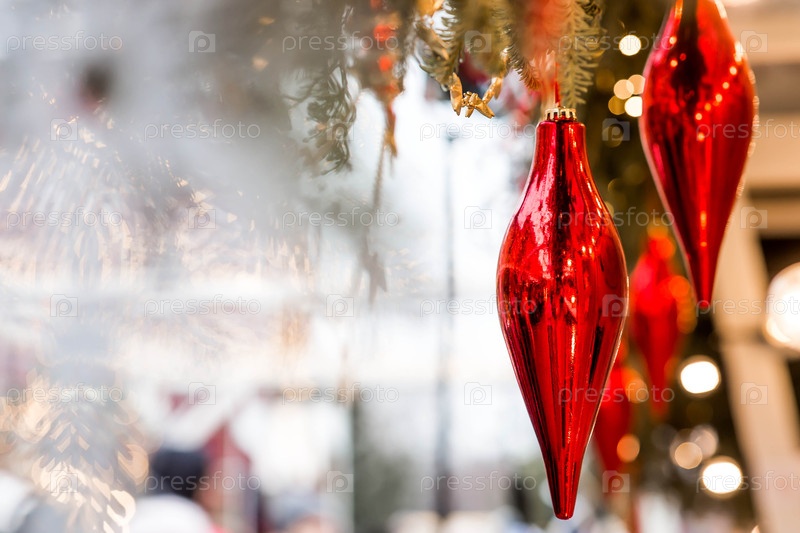 Праздничные игрушки на елке в Москве. Прекрасный рождественский фон. Концепция подготовки и декорирования к новому году. Новогодняя открытка 2026