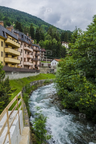 Летний альпийский пейзаж в северной Италии. курортный городок Понте ди Легно