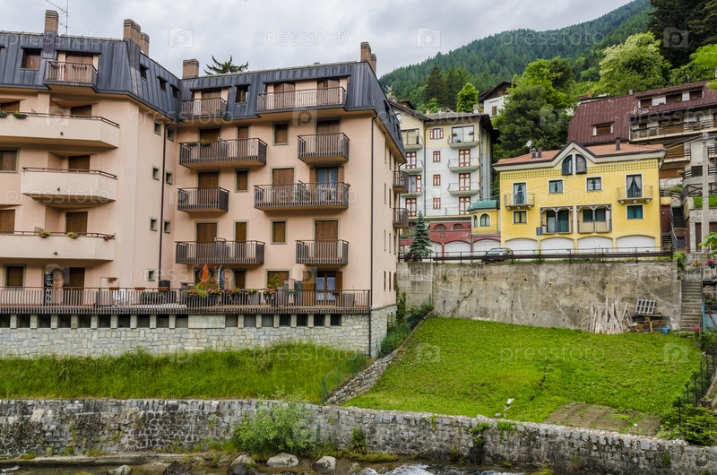 Летний альпийский пейзаж в северной Италии. курортный городок Понте ди Легно