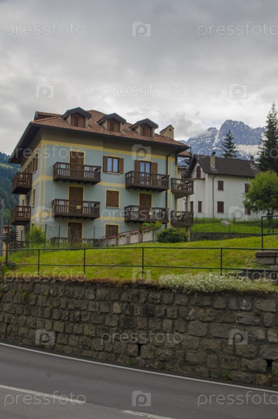 Летний альпийский пейзаж в северной Италии. курортный городок Понте ди Легно
