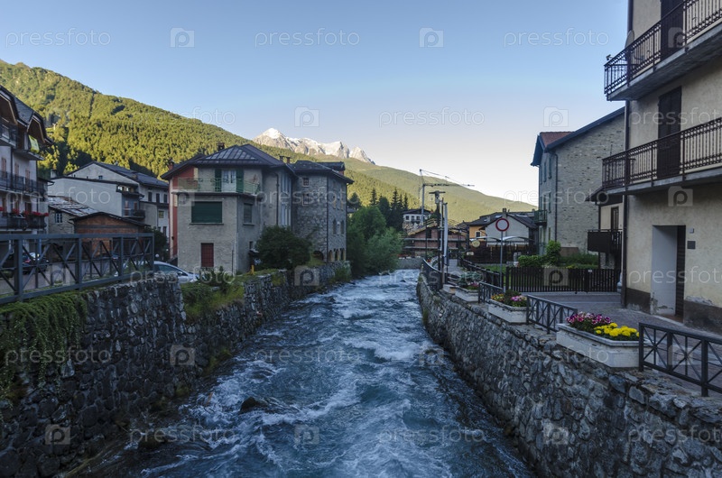 Летний альпийский пейзаж в северной Италии. курортный городок Понте ди Легно