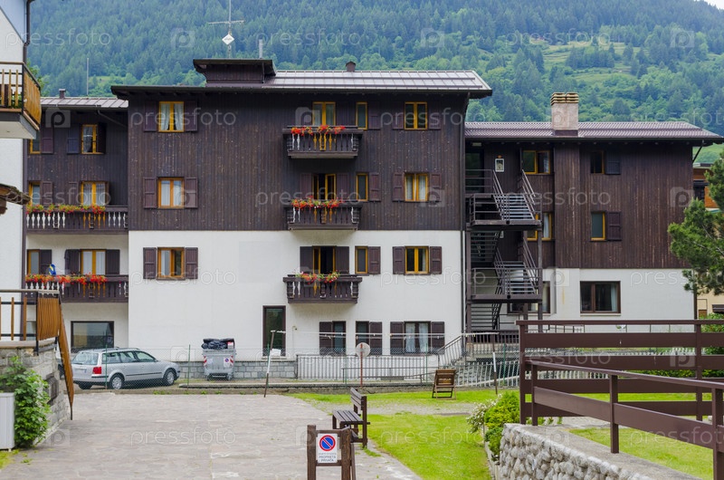 Летний альпийский пейзаж в северной Италии. курортный городок Понте ди Легно