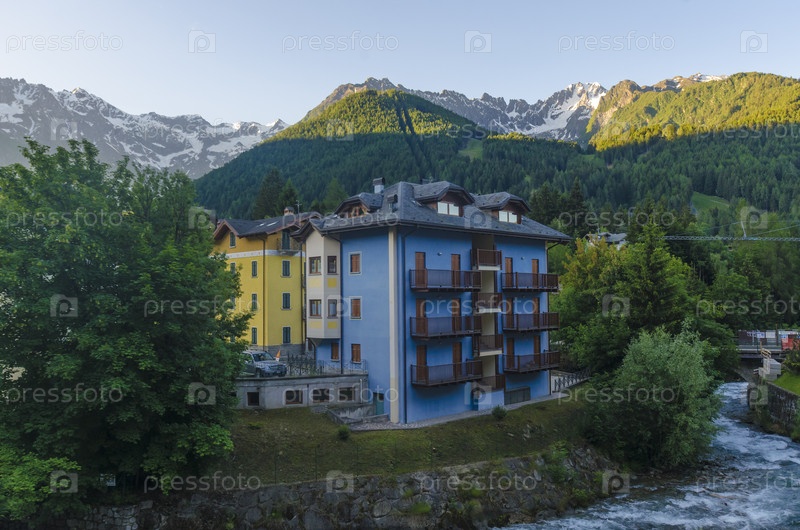 Летний альпийский пейзаж в северной Италии. курортный городок Понте ди Легно