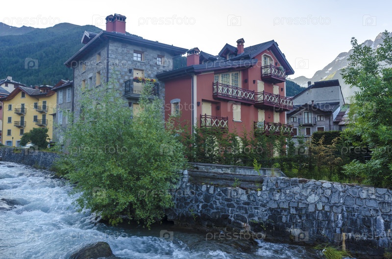 Летний альпийский пейзаж в северной Италии. курортный городок Понте ди Легно