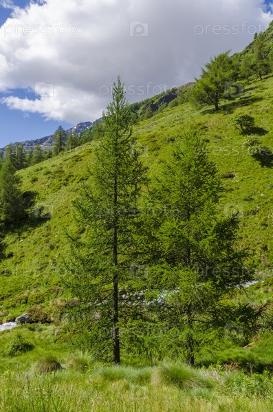 Летний альпийский пейзаж в северной Италии.Цветящие склоны в районе Понте ди Легно