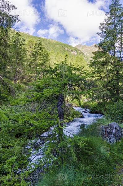 Летний Альпийский пейзаж в северной Италии. горная речка