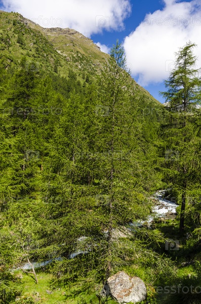 Зеленые альпийские луга и горные вершины. Италия