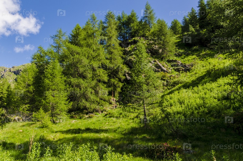 Зеленые альпийские луга и горные вершины. Италия