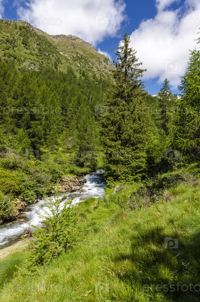 Зеленые альпийские луга и горные вершины. Италия