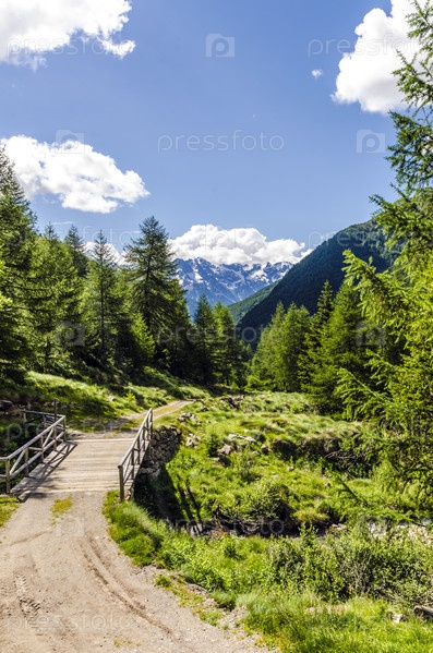 Дорога в альпах, луга и горные вершины. Италия