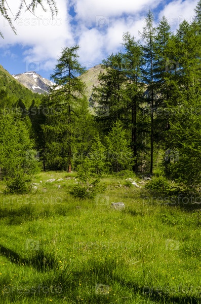 Зеленые альпийские луга и горные вершины. Италия