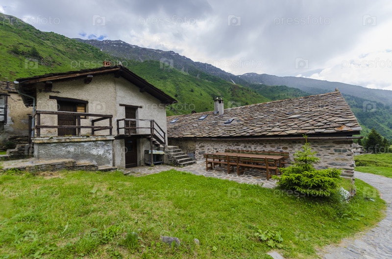 Каменные домики в алтпийской пастушьей деревне. Северная Италия