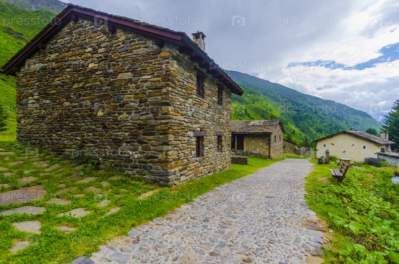 Каменные домики в алтпийской пастушьей деревне. Северная Италия