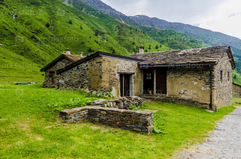 Каменные домики в алтпийской пастушьей деревне. Северная Италия