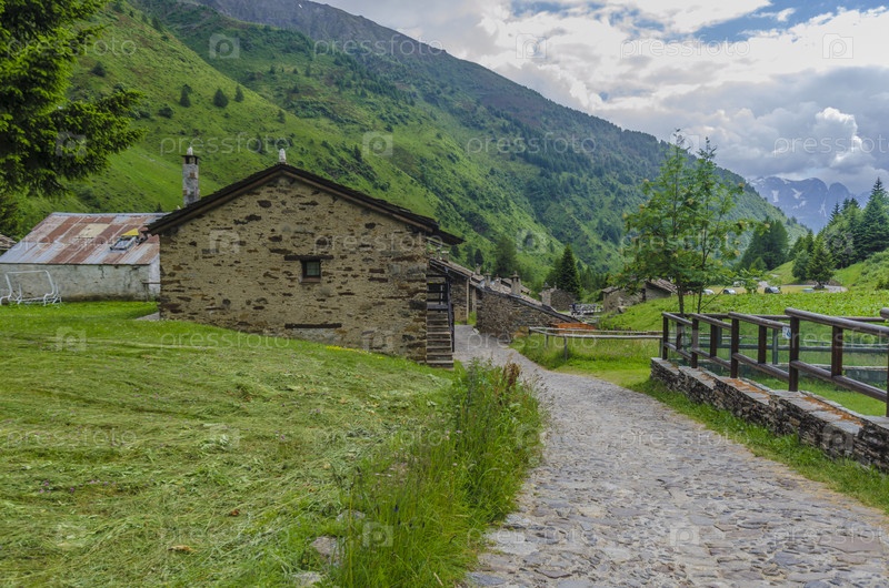 Каменные домики в алтпийской пастушьей деревне. Северная Италия
