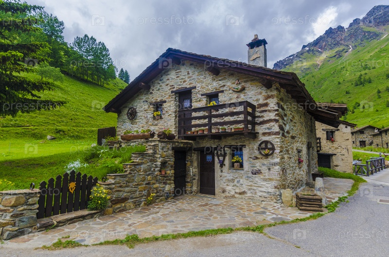 Каменные домики в алтпийской пастушьей деревне. Северная Италия