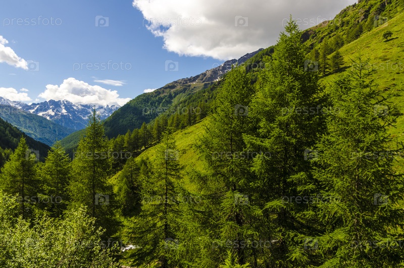 Летний альпийский пейзаж в северной Италии.Цветящие склоны в районе Понте ди Легно