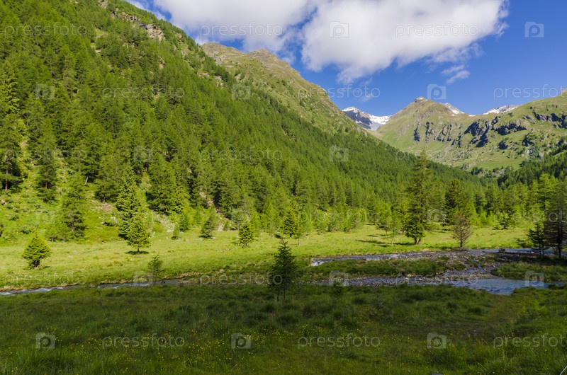 Летний Альпийский пейзаж в северной Италии. Альпийский луг