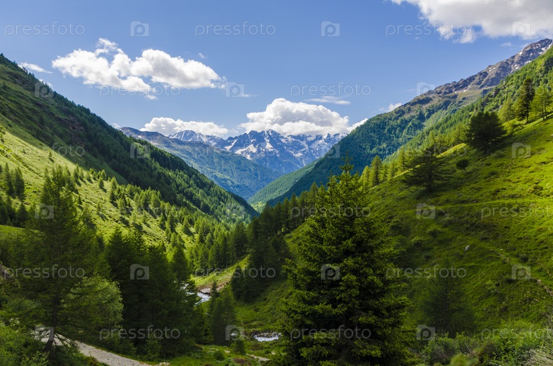 Летний альпийский пейзаж в северной Италии.Цветящие склоны в районе Понте ди Легно
