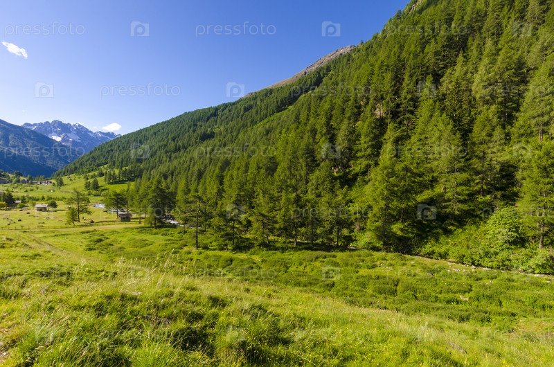 Летний альпийский пейзаж в северной Италии.Цветящие склоны в районе Понте ди Легно