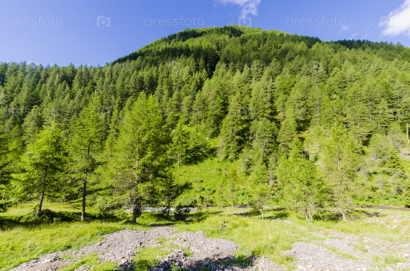 Летний Альпийский пейзаж в северной Италии. Проселочная горная дорога