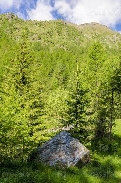 Летний альпийский пейзаж в северной Италии.Цветящие склоны в районе Понте ди Легно