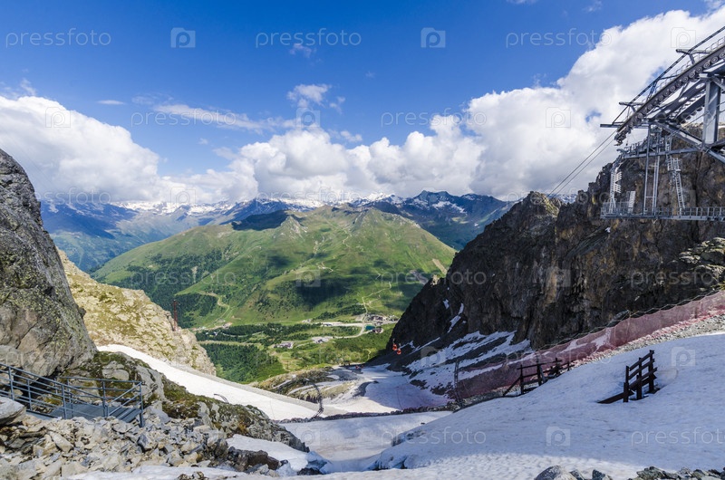 Таящий снег на вершине гор в Альпах летом