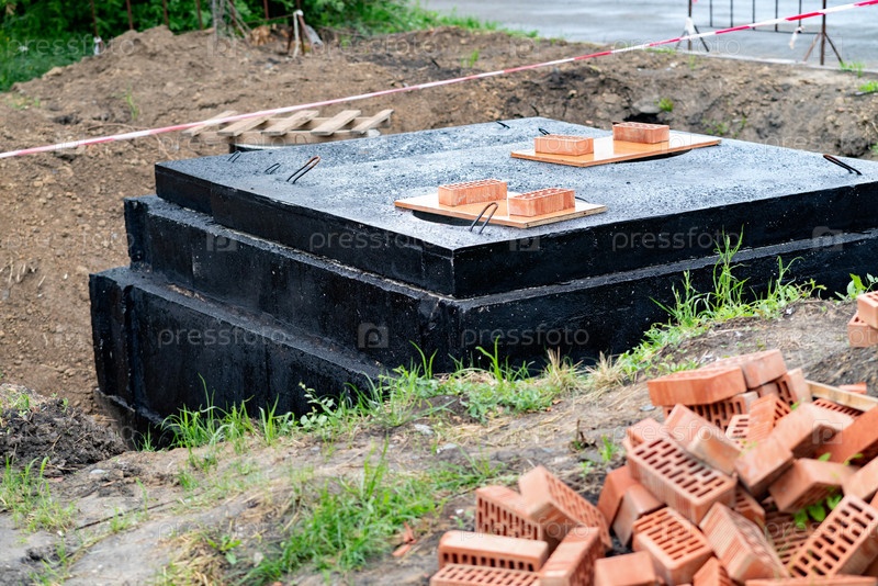Строительная площадка, демонстрирующая блоки и кирпичи, подготовленные для строительства в сельской местности в дневное время