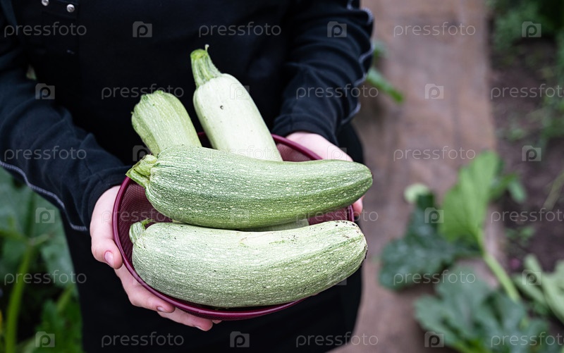 Сбор свежих кабачков в оживленном саду во второй половине дня
