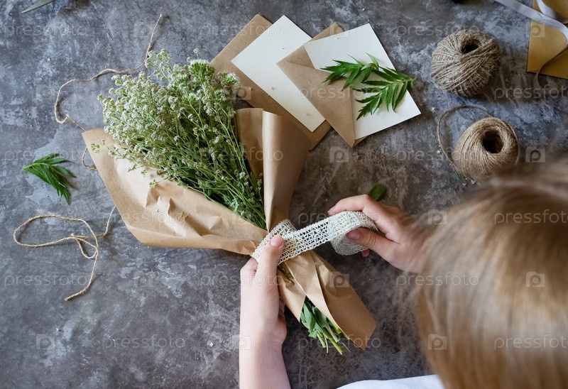 Создание деревенской цветочной композиции с натуральными материалами на текстурированной поверхности в уютном крафтовом пространстве