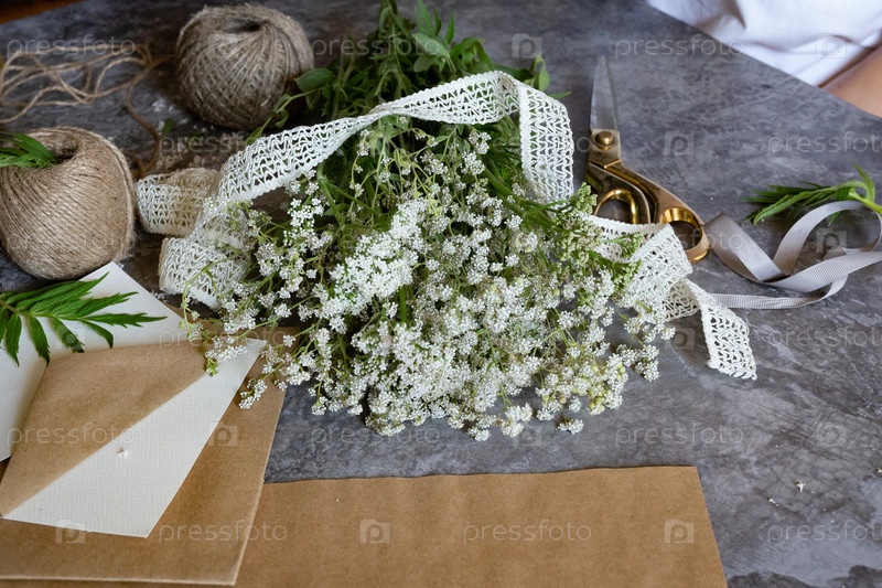 Ремесло с натуральными элементами с использованием свежесобранных цветов в творческом рабочем пространстве