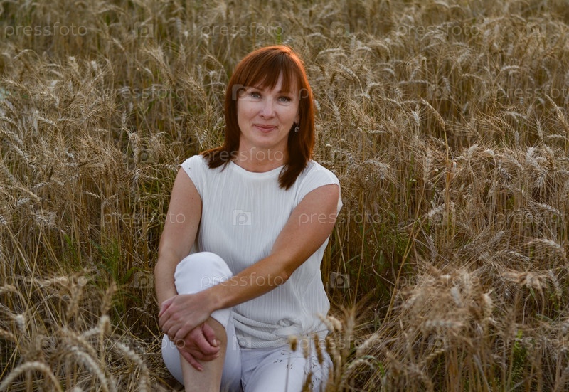 Женщина сидит на золотом поле пшеницы во время заката, демонстрируя природную красоту и спокойствие в сельской местности