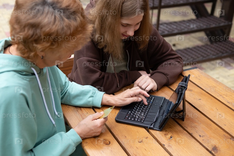 Девочка-подросток и пожилая женщина проводят время вместе