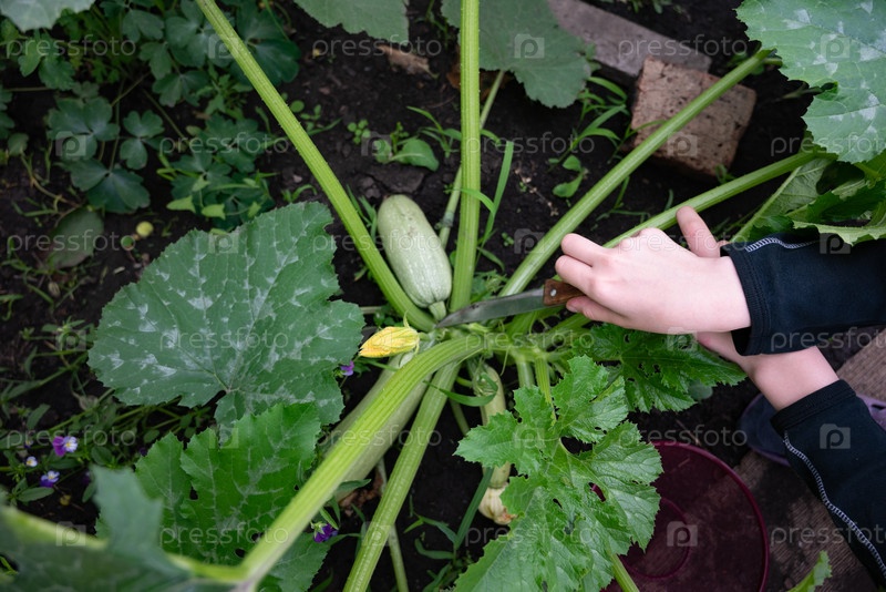 Сбор свежих кабачков в оживленном саду во второй половине дня