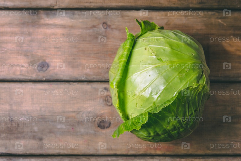 Свежая капуста на деревянном деревенском столе. Копируйте пространство. Здоровая еда. Сырые овощи