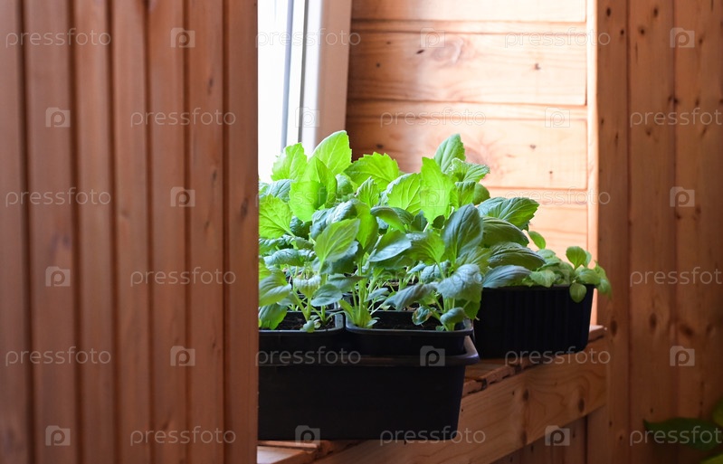 Коробка с саженцами на подоконнике в квартире