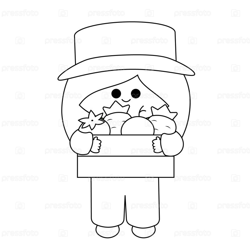 Милая девушка-фермер с урожаем в черно-белом цвете