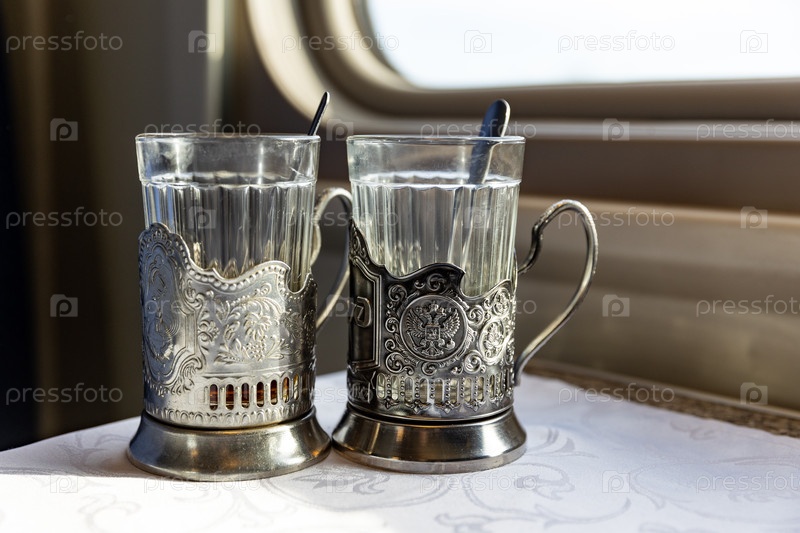 Россия. Краснодар. Стекло в подстаканнике на столе в купе вагона. Россия. Краснодар. A glass in a cup holder on a table in the carriage compartment