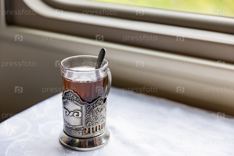 Россия. Краснодар. Стекло в подстаканнике на столе в купе вагона. Россия. Краснодар. A glass in a cup holder on a table in the carriage compartment