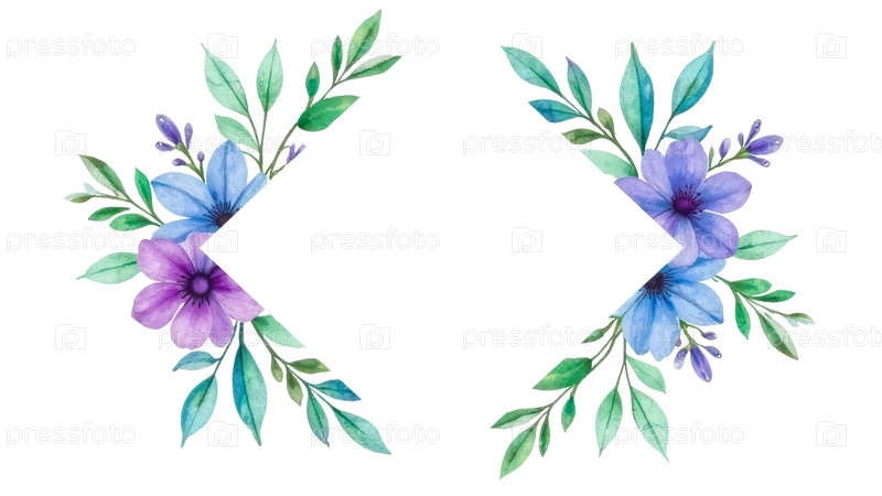 Мокап для флористов с акварельной иллюстрацией в форме ромба с сиренью и синими цветами, зелеными листьями на белом изолированном фоне с копировальным пространством