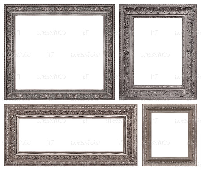 Набор серебряных рам для картин, зеркал или фотографий, изолированных на белом фоне