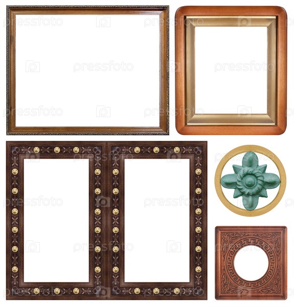 Набор деревянных рам для картин, зеркал или фотографий, изолированных на белом фоне