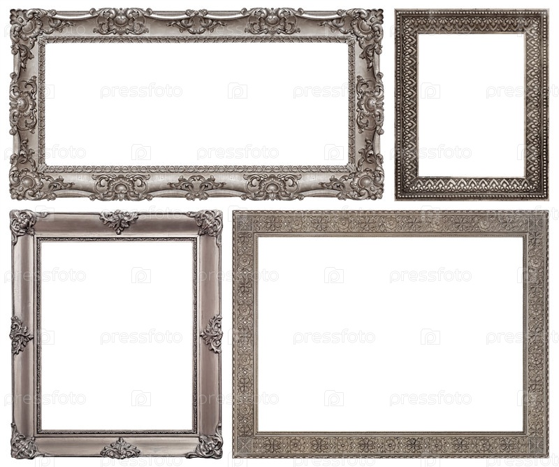 Набор серебряных рам для картин, зеркал или фотографий, изолированных на белом фоне