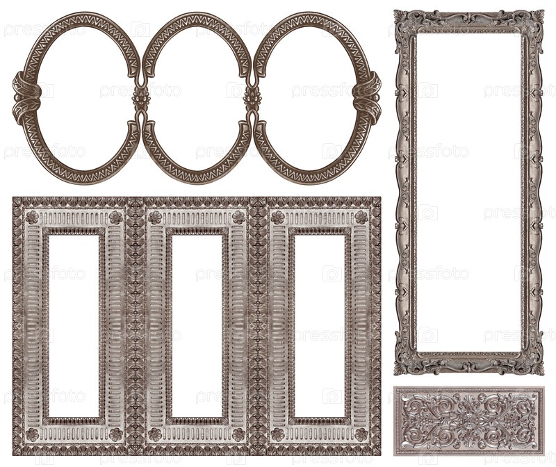 Набор серебряных рам для картин, зеркал или фотографий, изолированных на белом фоне