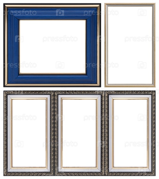 Набор деревянных рам для картин, зеркал или фотографий, изолированных на белом фоне